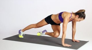 마운틴 클라이머는 상체를 지탱하면서 다리를 교차하듯 빠르게 움직이는 동작으로, 복부에 자극을 주는 동시에 유산소 효과도 큽니다.